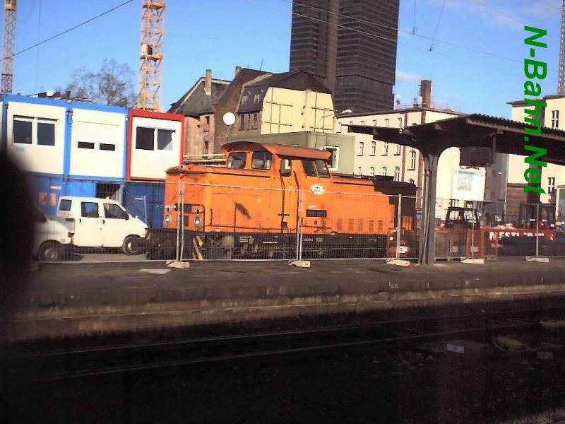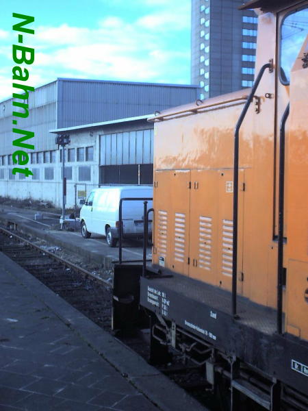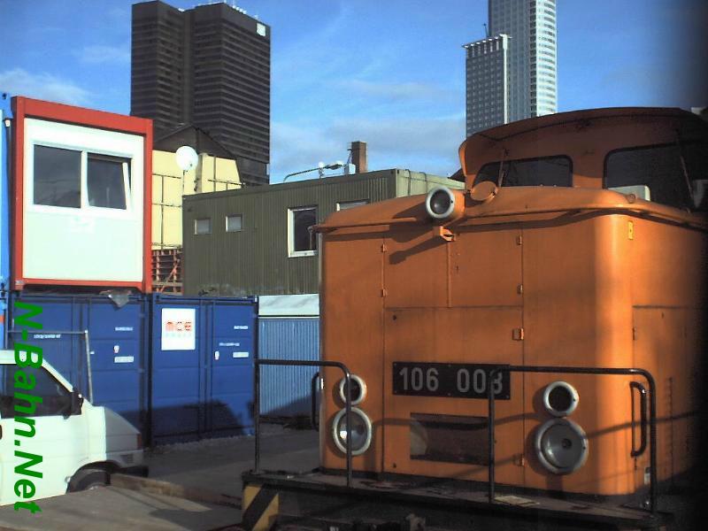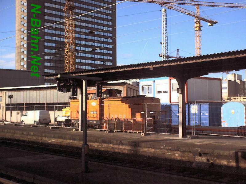 Am 24.01.03 konnte man ITL Lok 106 008 bei der Anlieferung von Baumaterial am Frankfurter Hbf beobachten. Zum Einsatz kamen die firmeneigenen Res Wagen. So werden LKW - Ladungen gespart!